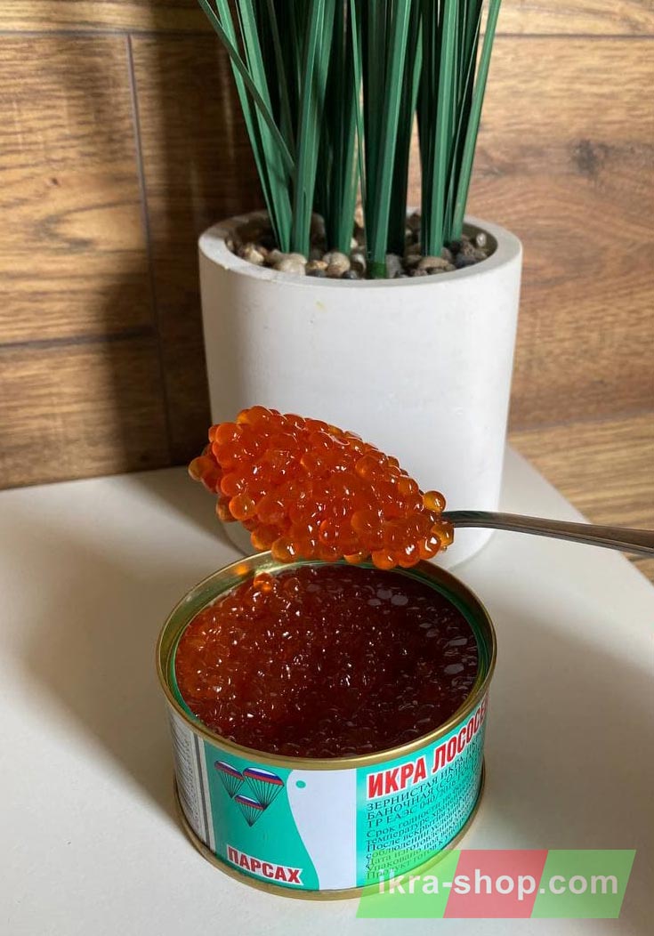 Ікра лососева зерниста Парсах виробляється на острові Сахалін із свіжовиловленої горбуші, не піддається заморозці. Завдяки високоякісній сировині та сучасному обладнанню, продукція торгової марки Парсах зберігає корисні якості протягом всього терміну придатності (12 місяців), володіє відмінними смаковими якостями та великою кількістю корисних властивостей.